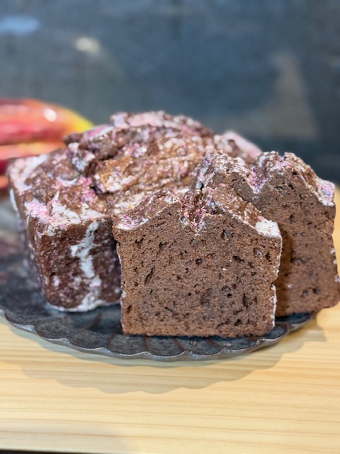 踊せんべいの和の生地に濃厚なハイカカオチョコレートと国産高級バターをたっぷりと混ぜ込み丁寧に焼き上げた、しっとりとろける食感が特徴のバターケーキです。アクセントに薔薇をふりかけ、贅沢で華やかな香りがさらに味を引き立てます。
